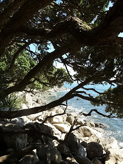 Na ons treintripje weer een broodje naar binnen gewerkt en toen via Tauranga en Mount manganui, door naar Hahei, waar we de komende 3 nachten zouden doorbrengen in The Orchard House. De naam zegt het al het is een huis in een kwekerij, de jongens konden hier lekker rond rennen en zoveel fruit eten als ze wilden. Naast het eten moest er natuurlijk ook weer een poison gebrouwen worden. Vorig jaar waren we hier ook al geweest, alleen toen zaten we in en ander huisje. Na ons te hebben geïnstalleerd te hebben en na een lange strijd de kamerverdeling te hebben gemaakt; hebben we lekker gerelaxed op het terras.